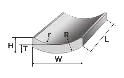 | 濕壓磁瓦 | ![]() | 外徑R | R(-0.5 ~ +1)mm | ± 0.1mm |
