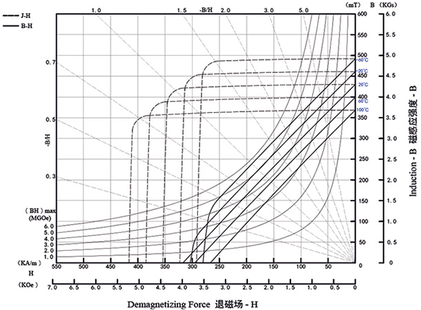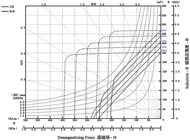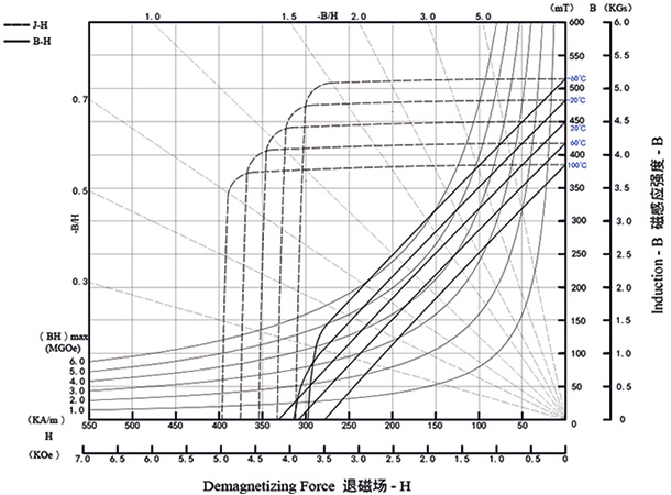 | 剩磁 | 矯頑力 | 內(nèi)稟矯頑力 | 最大磁能積 | |||||